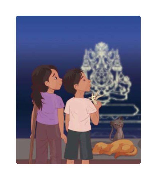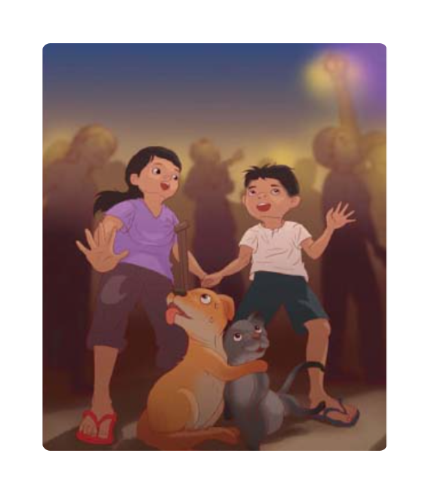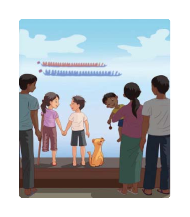 លីណា និង ដែន ឈរមើលគេប្រណាំងទូកនៅមុខវាំង។