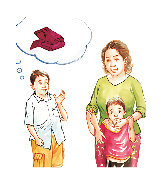 ចែម កូនចង់បានអ្វី? ខ្ញុំចង់បានអាវថ្មីមួយ ។